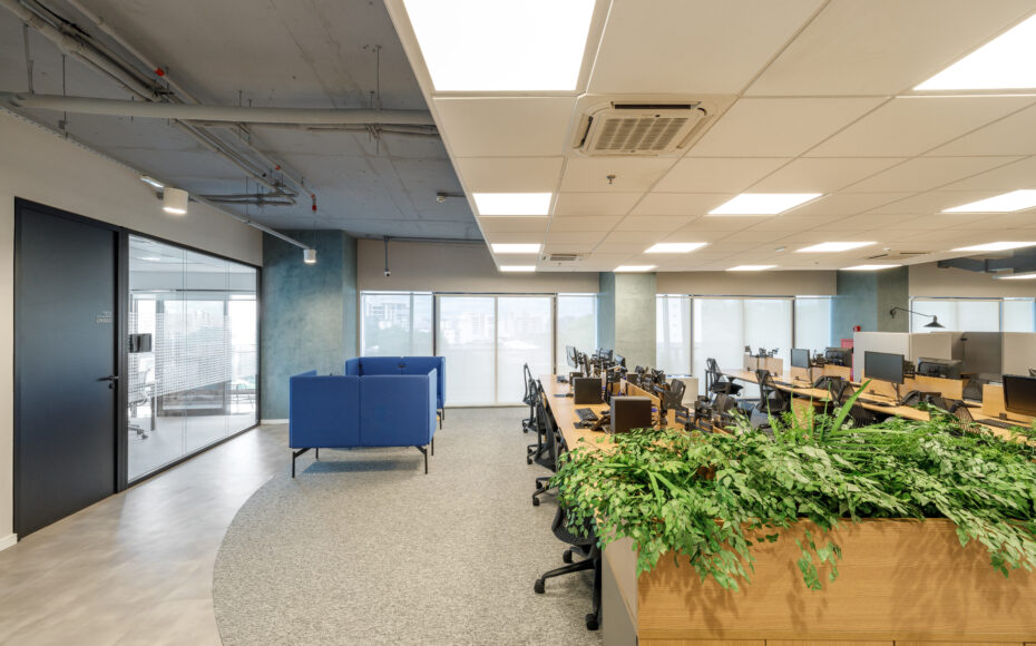 Priorizamos a iluminação adequada, utilizando estrategicamente fontes de luz para criar um ambiente vibrante e acolhedor, que favorece a concentração e o bem-estar. Além disso, investimos em soluções ergonômicas para garantir o conforto e a saúde dos colaboradores, desde a escolha das cadeiras até a disposição dos espaços de trabalho.