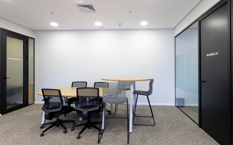A iluminação foi projetada para otimizar a funcionalidade dos espaços, com fontes de luz estrategicamente posicionadas para criar um equilíbrio entre luminosidade e aconchego, favorecendo a concentração e o bem-estar. Além disso, as soluções ergonômicas, desde a escolha dos móveis até a distribuição dos postos de trabalho, garantem um ambiente que prioriza a saúde e o desempenho dos ocupantes.