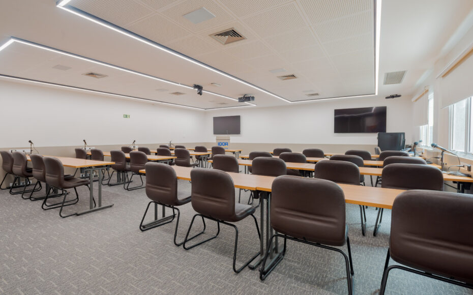A arquitetura buscou elevar o padrão institucional do espaço, utilizando linguagem contemporânea, materialidade equilibrada e soluções funcionais que reforçam organização, clareza e hierarquia espacial.