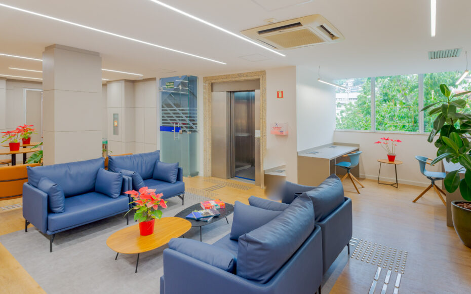 Desenvolvido pela Proh Arquitetura, o projeto corporativo para a Rede D’Or São Luiz, no Rio de Janeiro, envolveu a concepção de dois pavimentos administrativos, totalizando aproximadamente 1.000 m².